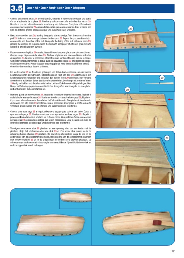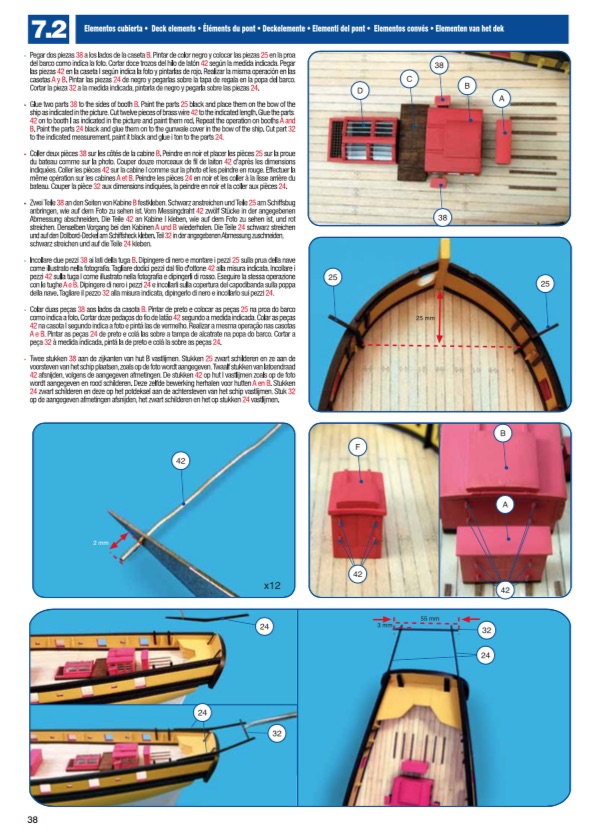 Here’s an example of the instructions, taken right from Artesania Latina’s website. By the way, you can now download all instructions and parts list directly from their site. So, you can view them on your computer, or just download them if you lose yours. Take a look at a sample of the instructions included in the kit’s 64-page instruction booklet.