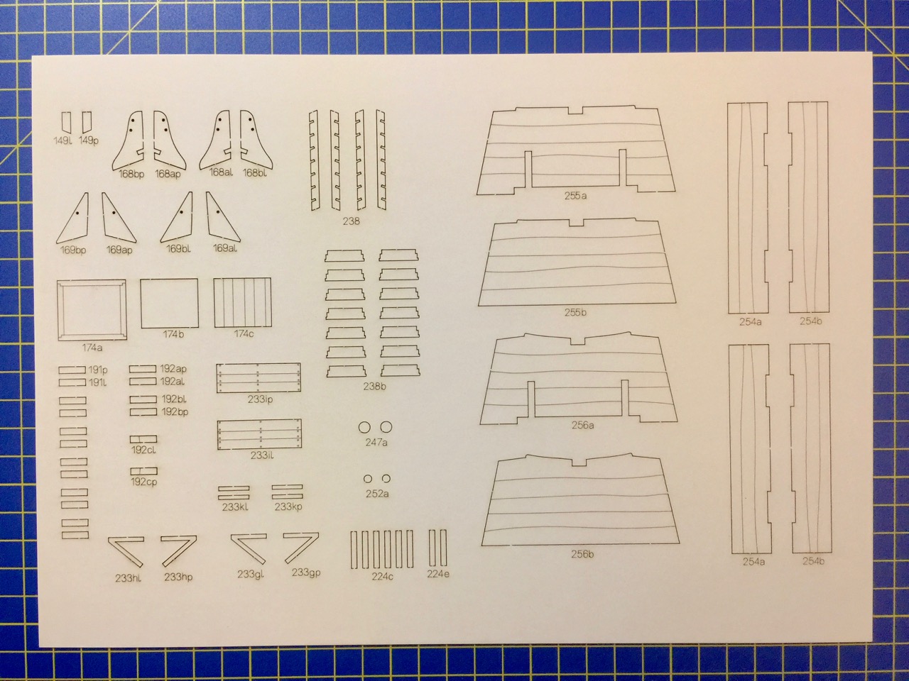 In any case, besides these laser-cut sheets, there is one small sheet of black laser-cut card stock for the rudder hinges.
