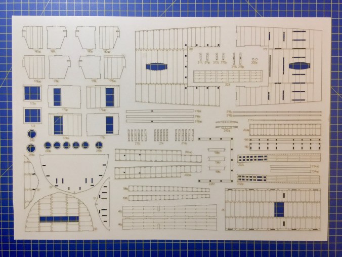 One of the things that’s very intriguing about these laser-cut card models is that the planking is pre-shaped, so there is no need to learn spiling techniques to shape them corrects. This is mostly unique to laser-cut card models, though there are some exceptions, particularly with wooden kits featuring lapstraked hulls, such as viking ships.