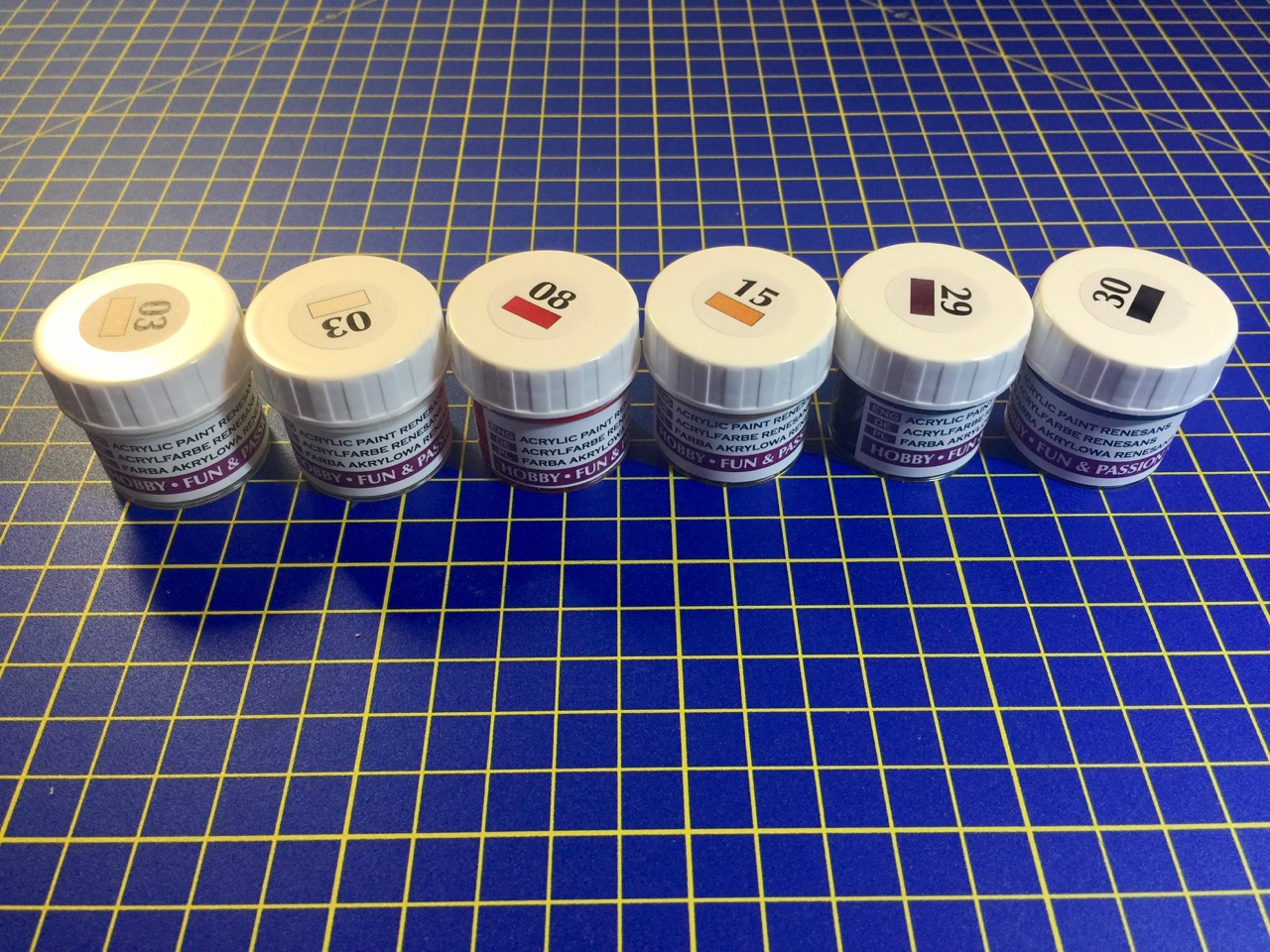 Six bottles of acrylic paints (from my experience, these work really nicely with paper)…