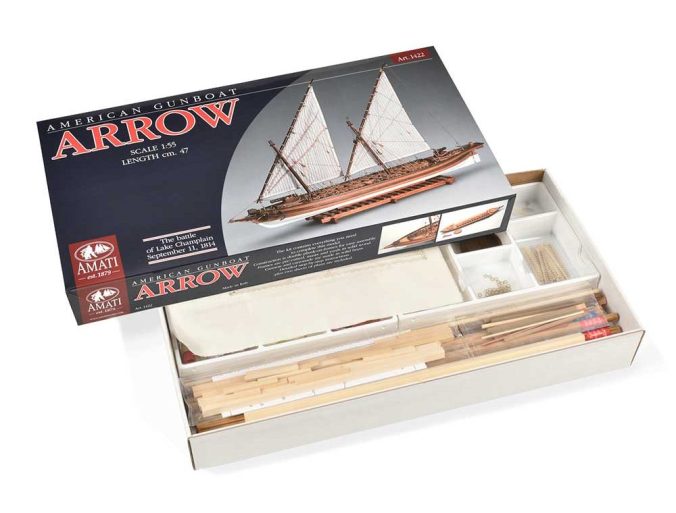 Amati’s “Arrow” is a 1:55-scale wooden model kit of one of these gunboat designs. The specific design can be find in the book The History of the American Sailing Navy, by Howard I Chapelle. By the way, though long out of print, this is an interesting book and a good reference, and used copies in good condition can easily be had for about $10.