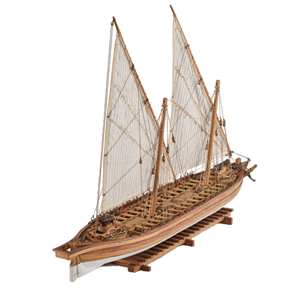 There is enough challenge here, and a surprising amount of rigging for a small vessel with only two lateen sails. This model kit sells for $108.99 and includes a launch ways style base.