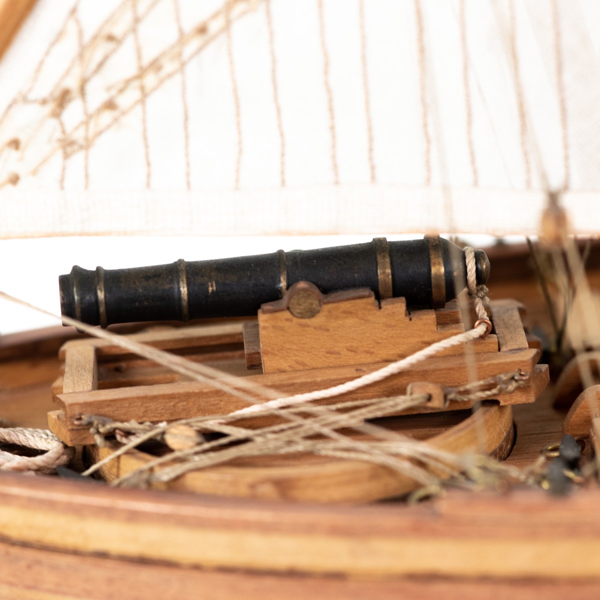 This kit makes for an interesting build of a unique type of craft that formed an important part of American history. The completed model’s graceful lines are certain to draw attention. The model is ideal for those who want to build something attractive that doesn’t require as much time as it takes to build a square rigger or any of the larger warships with their rows of gunports and cannons. But, with the large, detailed long gun and carronade in their swivel mounts, it carries just enough armament to make it stand out.