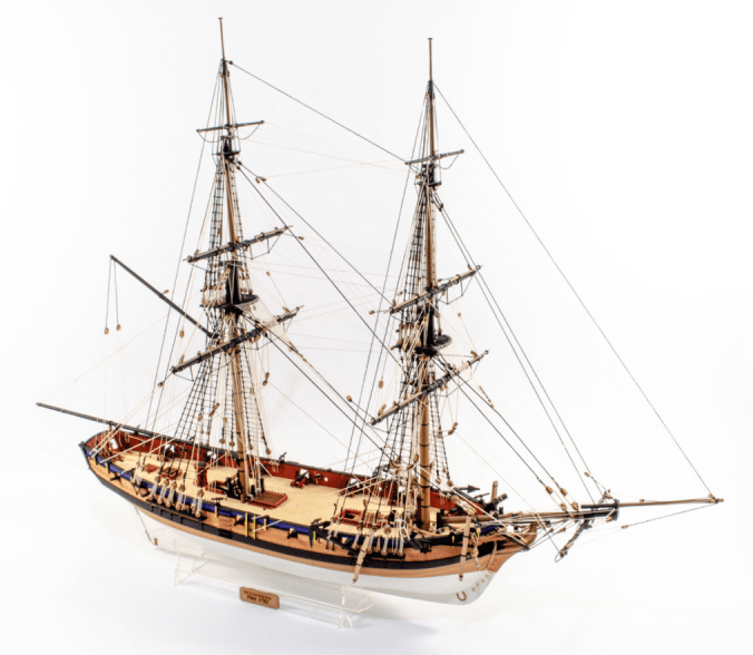 HMS Speedy, shown above, is a model of a 14-gun British Royal Navy brig. We ran out of stock of these following the holidays, so we’re happy to announce that they’re back in stock, and ready to ship to you!