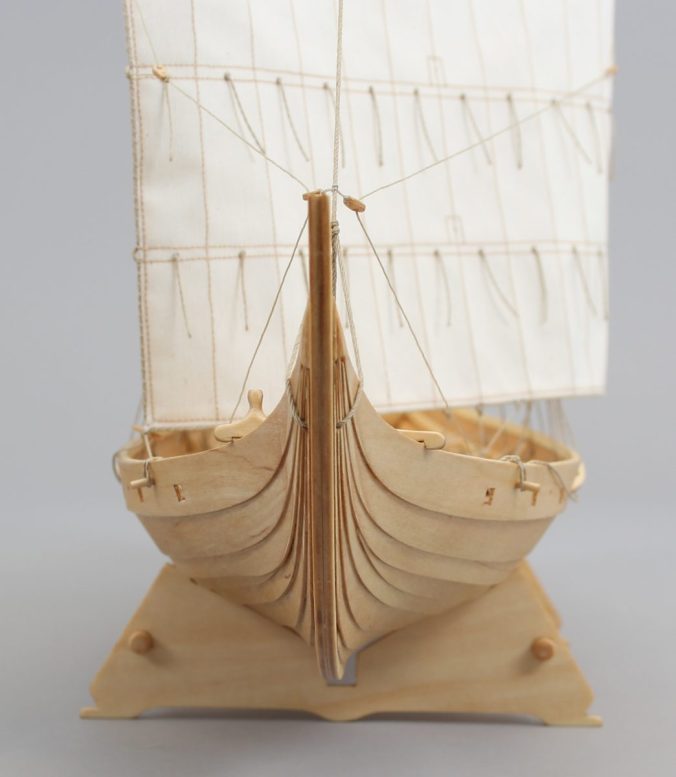 There is enough challenge here, and a surprising amount of rigging for a small vessel with only two lateen sails. This model kit sells for $108.99 and includes a launch ways style base.