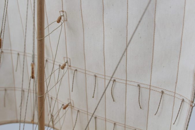 Note that this kit includes sail materials and the information for you to make your own sail. However, we also offer a set of pre-sewn sails, if you prefer not to do your own sewing. Also, the ship’s boat shown on the model is optional. It is Master Korabel’s MK0102 75mm ship’s boat kit.